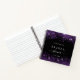 A stylish black background with purple faux glitter dust. Personalize and add a name and the date. Can be used as guest book, planning the party or as a party favour.