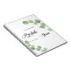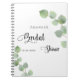 A white background colour. Decorated with elegant eucalyptus greenery sprigs. Add a name and a date.