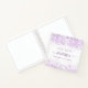 A stylish white background with violet, lavender coloured faux sparkles. Add a name, and a text.