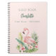 A feminine blush pink background decorated with a pink flamingo and tropical flowers and foliage. Personalize and add a name and text/date.