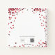 A white background with red sparkles, confetti, a red dress. The name is written with a modern hand lettered style script with swashes. Personalize and add a name and date.