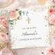 For an elegant confirmation. A chic white background, decorated with a rose gold and blush pink rose, eucalyptus greenery, faux gold glitter dust and a golden cross. Personalize and add a date and name.