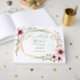 GUEST BOOK | Terrarium style frame with spring flowers in pink and light sage green eucalyptus leaves surrounding the frame. A combination of script calligraphy combined with a minimalist, contemporary style text layout makes it a trending style wedding suite. Design created for TheBarefootBride™ by © WhimsicalArtwork™. This is part of a wedding stationery suite collection with matching wedding accessories also baby shower and other occasion stationery. Feel free to contact us if you need assistance.