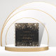 A stylish black background with dark faux gold glitter dust. Personalize and add a name and the date on the front. Space for a saying on the back.