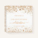 A stylish white background with dark faux gold glitter dust. Personalize and add a name and the date on the front.  Space for a saying on the back.