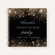 A stylish black background with dark faux gold glitter dust. Personalize and add a name and the date. Can be used as guest book or planning the party.