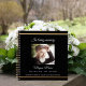 A guest book for a memorial service or funeral. A classic black background, a faux gold frame on the front. Personalize and add a photo, name and dates.
