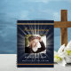 A guest book for a memorial service or funeral. A classic dark blue background, a faux gold frame on the front. Sun, star rays behind the photo. Personalize and add a photo, name and dates.