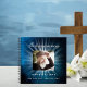 A guest book for a memorial service or funeral. A blue sky as background. White light rays behind the photo. Personalize and add a photo, name and dates. White letters.