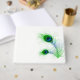 This guest book is shown in white with a pretty peacock feathers print.