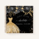 For a Quinceañera, 15th birthday party. A black background with faux gold glitter dust, a golden dress and black roses, florals. The name is written with a modern hand lettered style script. Personalize and add a name and date.