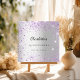 A faux silver metallic looking background decorated with purple, violet faux glitter dust. Personalize and add a name and date.
