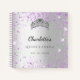 A faux silver metallic looking background decorated with purple, violet faux glitter dust and a tiara. Personalize and add a name and date.