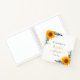 A white background colour. Decorated with sunflowers, eucalyptus greenery and golden foliage. Add a name and a date.
