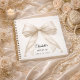 Celebrate a special Sweet 16 with this elegant guest book featuring a beautiful ivory satin bow with delicate pearl details. The timeless design adds a touch of sophistication to the celebration and creates a lovely keepsake from this unforgettable milestone.