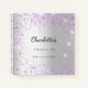 A faux silver looking background decorated with purple, violet faux glitter dust. Personalize and add a name and date.
