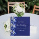 A navy blue background decorated with royal blue and silver looking flowers. Personalize and add your names and wedding date.
