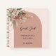 A soft blush pink background, with an antique rose coloured arch frame, adorned with muted, earthy roses, eucalyptus greenery, and pampas grass. Personalize and add your names and wedding date.