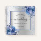 Faux silver looking background decorated with navy blue and light blue florals, flowers, and faux glitter, sparkles. Personalize and your names and the wedding date.