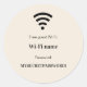 A Wi-Fi symbol.  Add your wi-fi name and password for your customers/guests.  Beige background, black text.