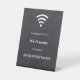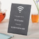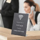 A chalkboard looking background. A Wi-Fi symbol. Add your wi-fi name and password for your customers/guests. White text.