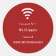 A Wi-Fi symbol.  Add your wi-fi name and password for your customers/guests. Red background, white text.
