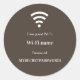 A Wi-Fi symbol. Add your wi-fi name and password for your customers/guests. Taupe, brown background, white text.