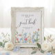 Invite your guests to leave their well wishes in timeless garden style with this romantic wildflower guest book sign. Featuring delicate watercolor florals in soft blush, blue, and golden hues along the bottom, this elegant design brings a fresh botanical touch to your reception décor.