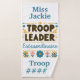 Quelle serviette sucrée à donner à votre chef de troupe de scoutisme de fille préféré! Personnalisez-le avec le nom du chef de troupe et le numéro de troupe. Ce sera idéal pour les camppouts de troupes, les réunions en plein air ou l'utilisation quotidienne. Consultez la troupe pour plus de cadeaux et de matériel de scoutisme.