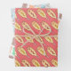 This gift wrapping paper sheet set features three different kawaii animal and food patterns, Guinea pig and capybara corn dog pattern in red, colorful Guinea pig shape gummy candy patterns in white and koala with ramune Japanese marble soda pattern in blue. The cute paper sheets are perfect for decorating gifts for children and animal lovers.