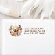 Le côté gauche de ces étiquettes d'adresse de retour comporte le portrait d'un magnifique chien jaune doré Labrador Retriever. L'image est enfermée dans une jolie couronne de fleurs et de feuilles d'automne dans les tons brun, tan et crème. Votre texte personnalisé est en brun et doré à droite.