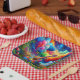 Great accent for an outdoor summer party. Bright colors, vibrant floral design