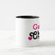 Guitar Chick. Vrouwelijke beker met de kleuren: roze paars en zwart. Voor een vrouw die van gitaar spelen houd.