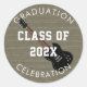 Round graduation envelope seal with black electric guitar image and custom white text. Include class of with year in the centre and customize two curved text areas with "graduation celebration" or any other wording. Music major, musician, guitar player theme for the guy grad in brown and black colours. Design works on round or square stickers only.