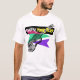 Retro illustration of guitar with customizable lettering (Superposition of the same text to create a drop shadow). In superpoistion of the guitar two coloured triangular shapes with the style of the 80s revisiting the 50s. Customizable Shirt. Matching products: