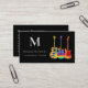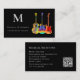 This vibrant business card features psychedelic acoustic, semi-acoustic, and electric guitars in a dazzling array of colours against a striking black background. Complete with a personalized monogram, your name, contact details in stylish typography and a convenient website QR code, all rendered in stylish typography, this card is the perfect cool and colourful introduction for guitar teachers, guitarists, professional musicians, entertainers, and music teachers. Original artwork by artist Catherine Sweetman.
