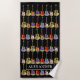 Electric guitars, acoustic guitars and semi acoustic guitars pattern in funky psychedelic colours with personalized name monogram beach towel on a black background. Fully customizable using the monogram name template. Any guitarist or musician will tell you that you can never have to many guitars. This fun colourful guitar design celebrates the energy and variety of this wonderful musical instrument. The perfect gift for guitarists, musicians and music lovers. Psychedelic guitar pop art original artwork by artist Catherine Sweetman