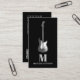 Grey electric guitar with white pick guard simple design on a black background with Personalized monogram name and QR Code. Add Your own details using the template to create a professional business card. The perfect design for guitarists, professional musicians and music teachers. Simple classic original artwork and typography by artist Catherine Sweetman