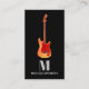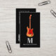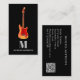 Flame and red pick guard electric guitar design on a black background with Personalized monogram name and QR Code. Add Your own details using the template to create a professional business card. The perfect design for guitarists, musicians and music teachers. Simple classic original artwork and typography by artist Catherine Sweetman