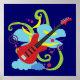 This awesome dreamy retro guitar design features a bright red electric guitar with vibrant neon splotches of colour and blue clouds! This guitar art is the perfect gift to buy for a guitarist, musician, music lover or anyone who loves vintage inspired original indie vector art!
