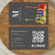 Guitar music teacher musicians grey business card with website QR code template and contact social media icon and details perfect for business networking. Psychedelic acoustic guitar, semi acoustic guitar and electric guitar in bright colours on a grey background complete with personalized monogram, name, details and your website QR code. Cool modern musicians business card design for guitarists, professional musicians, entertainers and music teachers. Original artwork by artist Catherine Sweetman