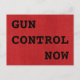 Gun Control Now: a simple statement in bold black text on a red linen photo background to let your political representatives know you are fed up with shootings and mass shootings that are now all too common in the United States. Doing nothing clearly does not help protect anyone. Show them that you want gun law reform.