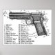 A vintage image of a gun diagram for a semi-automatic 45 calibre handgun.