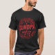 A retro-style t-shirt design featuring the phrase "Gunpa: Like a normal grandpa but more fun and owns guns," with a vintage colour palette and classic font, evoking a playful yet bold vibe.