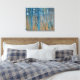 This is based on classic nature painting artworks by Gustav Klimt, Beech Grove 1, 1902. The artwork portrays a dense forest of tall, slender birch trees, with pale trunks marked by dark, vertical lines. The foliage is depicted in shades of blue, green, and yellow, adding a sense of depth and vibrancy to the scene. The forest floor is covered in a layer of orange and brown leaves, creating a striking contrast with the lighter tree trunks. The overall composition uses pointillist and impressionistic techniques, giving the image a lively, textured appearance. The verticality of the trees emphasizes the serene and rhythmic structure of the forest.