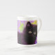 Bone China Mug featuring a Gustav Klimt black kitten! This wide-eyed beauty poses in a green field of purple flowers. A thoughtful gift for cat lovers and Austrian art enthusiasts!