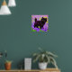 Poster featuring a Gustav Klimt black kitten! This wide-eyed beauty poses in a green field of purple flowers. A thoughtful gift for cat lovers and Austrian art enthusiasts!