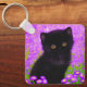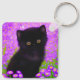 Keychain featuring a Gustav Klimt cat! This fluffy kitty sits in a green field of purple flowers. A purr-fect gift for cat lovers and Austrian art enthusiasts!