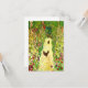 Card featuring Gustav Klimt’s oil painting Garden with Roosters (1917). Two brown chickens stand on a garden path. Beautiful pink, red, and white flowers bloom along the path. A great gift for fans of Art Nouveau and Austrian art.