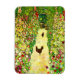 Magnet featuring Gustav Klimt’s oil painting Garden with Roosters (1917). Two brown chickens stand on a garden path. Beautiful pink, red, and white flowers bloom along the path. A great gift for fans of Art Nouveau and Austrian art.